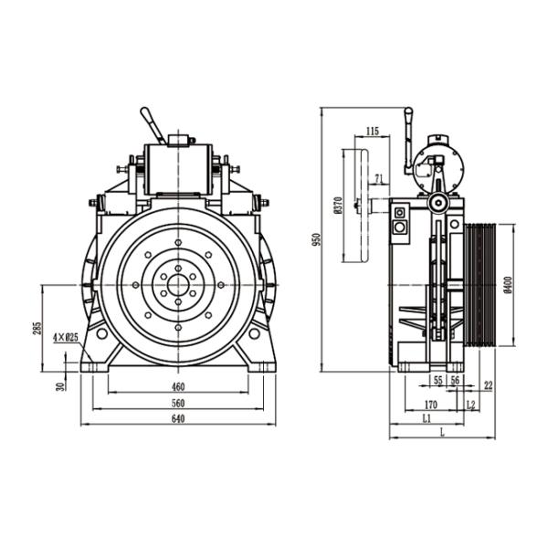 | Spec | Elv Load(kg) | Elv Speed(m/s) | Sheave Diam(mm) | Sheave Groove | Current (A) | Power (KW) | Speed (r/min) | Freq (Hz) | Torque (N.m) | Poles | L mm | L1 mm | L2 mm | Undercut Angle(0) |