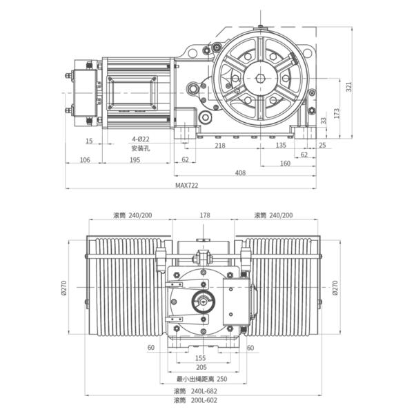 ·When the car reaches the top floor, the distance of rope head rod must be the same as that of the roller rope out, the wire rope is vertical, and the minimum rope-out distance is 250mm;